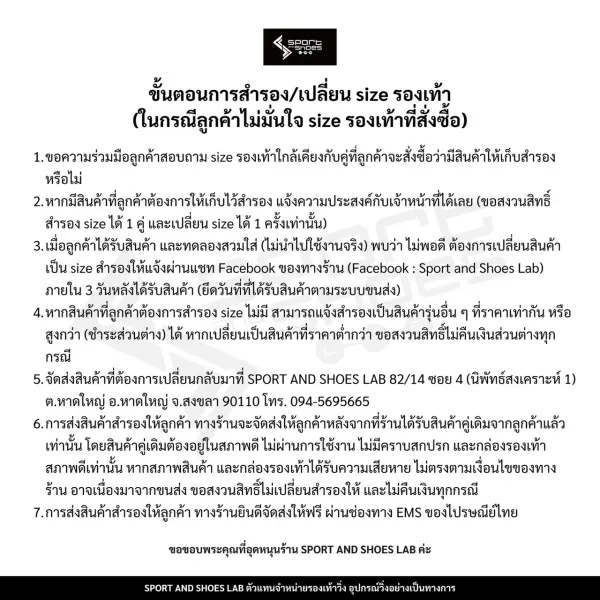สิทธิพิเศษสำหรับลูกค้าสมาชิก Sport and shoes lab สามารถทัก Line : @sportandshoeslab ก่อนสั่งซื้อเพื่อแจ้งเลขที่สมาชิกสำหรับสะสมแต้มและรับส่วนลดพิเศษ