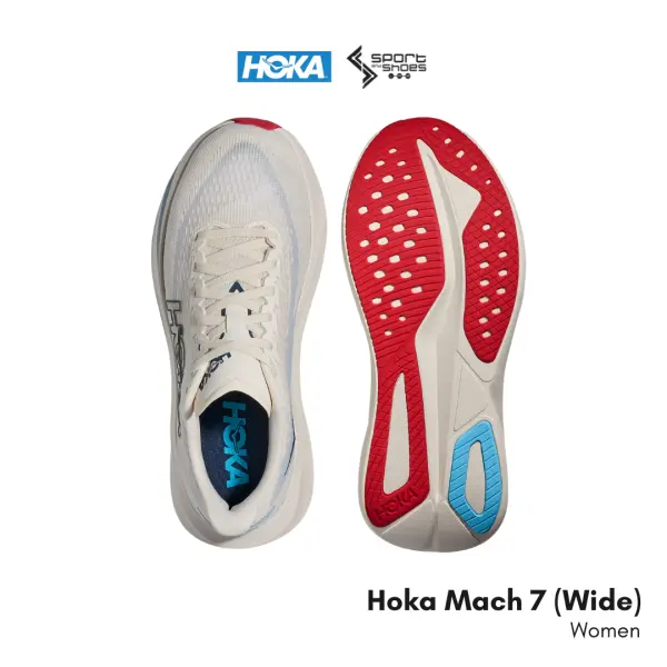 Hoka Mach 7 รุ่นล่าสุดสบายเท้าขึ้น พร้อม high-energy foam ที่ช่วยส่งแรง สัมผัสการวิ่งที่กระชับเท้า ตอบสนองไวกว่าเดิมพอๆกับรุ่น Hoka Mach 6
