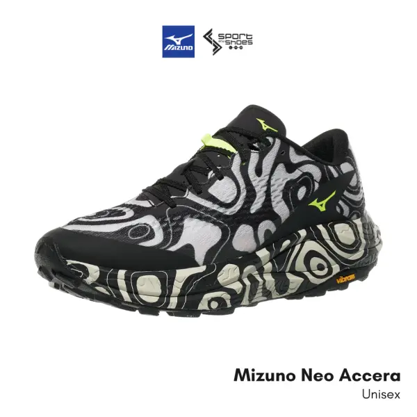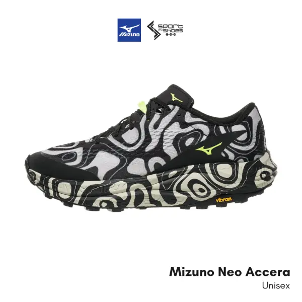 รองเท้าวิ่งเทรลรุ่นล่าสุดจาก MIZUNO ที่โดดเด่นด้วยสีพิเศษ เช่นลายพู่กันและม้าลายในอดีต มาพร้อมกับสีลายสลับขาวและดำจากลวดลายของแผนที่เส้นความชัน
